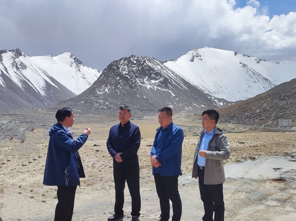 李忠勤(左一)向贠書霞(左二)一行介紹烏魯木齊河源冰川情況