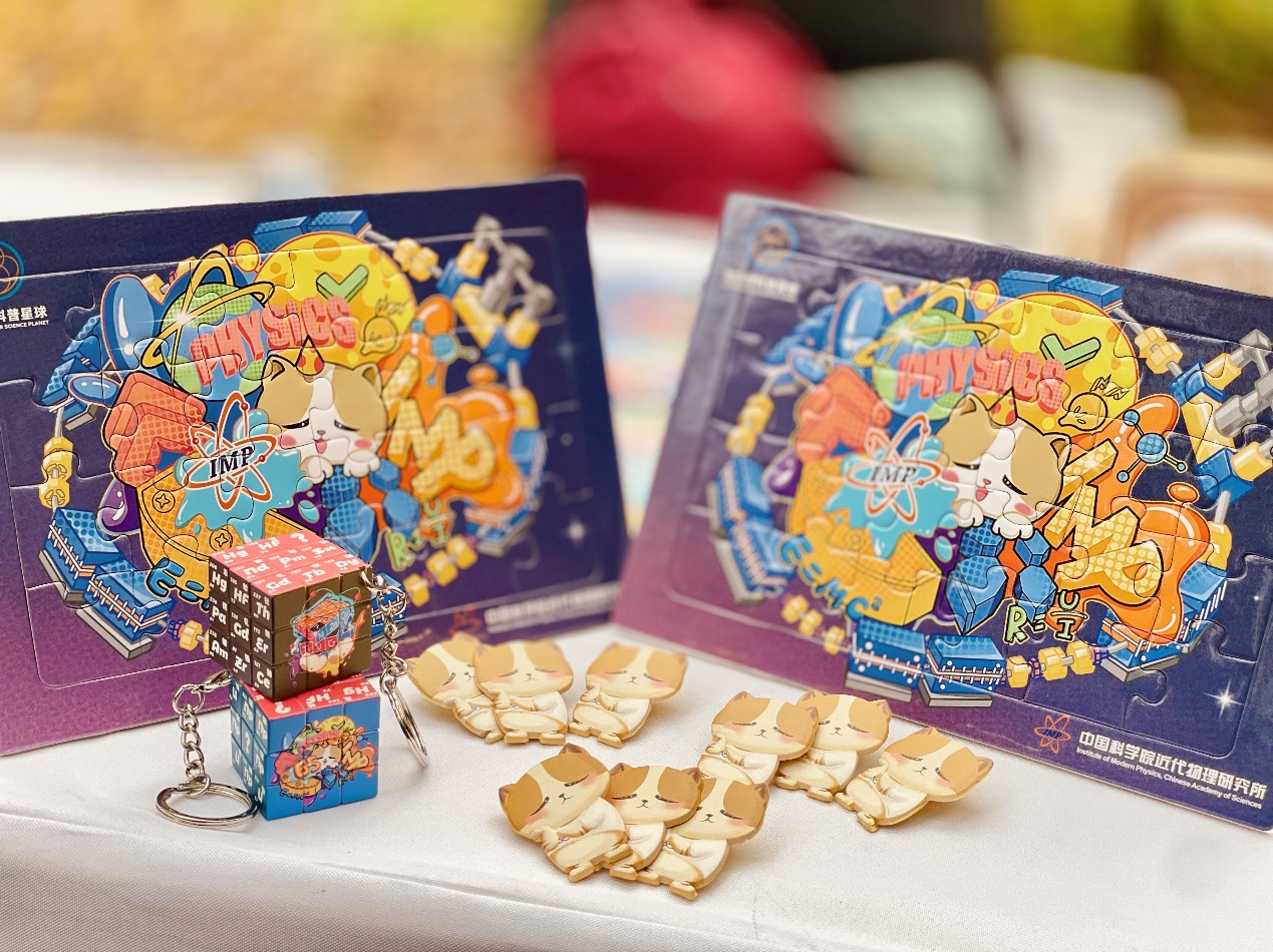 近代物理所通過現(xiàn)場展示“碳離子精準治療癌癥技術及裝置”模型,使得公眾直觀了解到科技創(chuàng)新成果如何促進人民生命健康領域的發(fā)展。近代物理所還展出了以“原子核”“新核素”“加速器”為主題的水晶球夜燈、魔方鑰匙扣、拼圖等文創(chuàng)展品。
