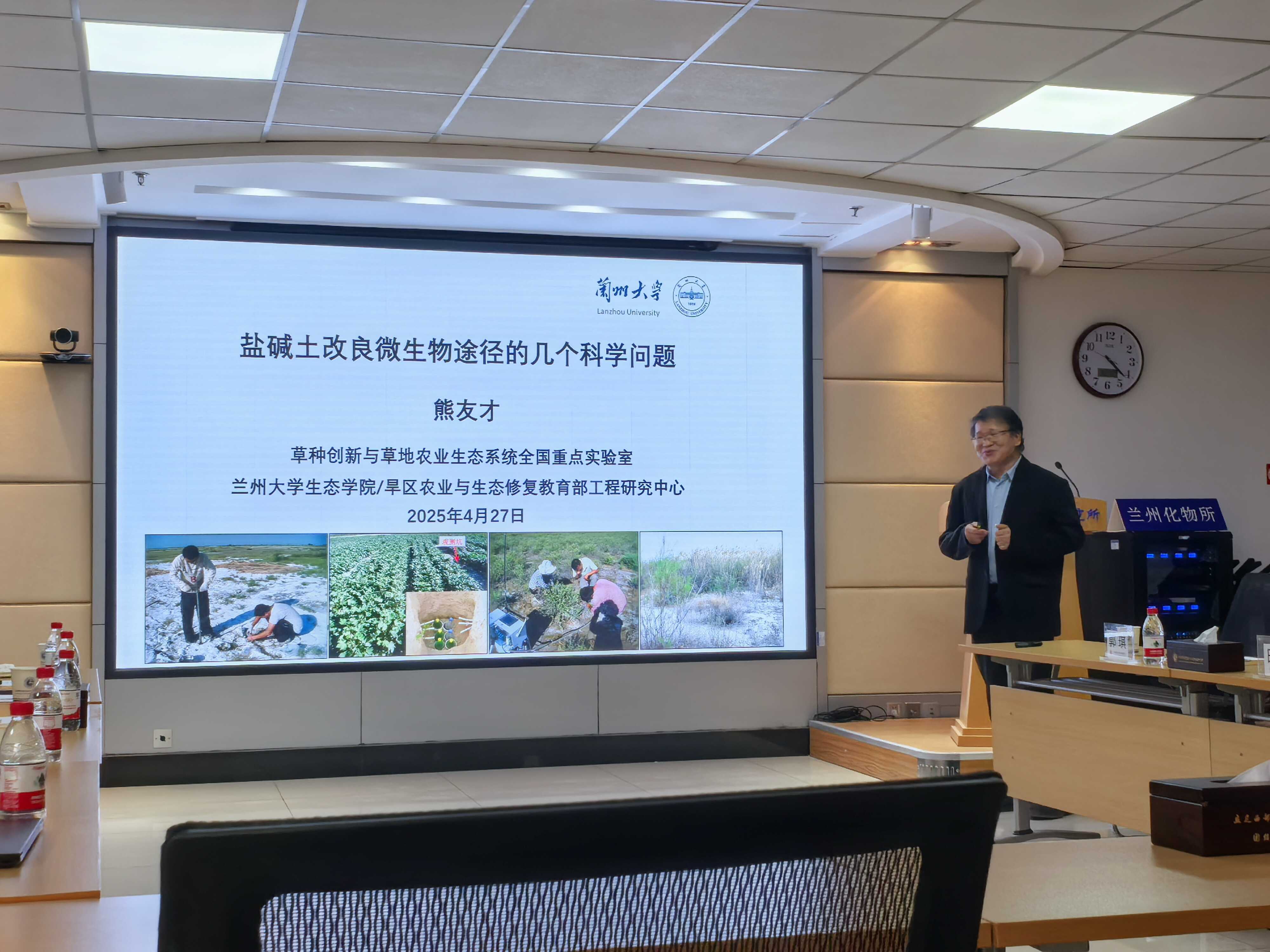 4月27日,中國科學院蘭州化學物理研究所舉辦鹽堿地改良新材料、新技術學術報告會,邀請北京化工大學馮擁軍教授、中國石油大學(華東)田原宇教授、蘭州大學熊友才教授和甘肅省科學院生物研究所郭琪研究員分別作了學術報告。蘭州化物所資源化學與能源材料研究中心/甘肅省黏土礦物重點實驗室相關人員參會。