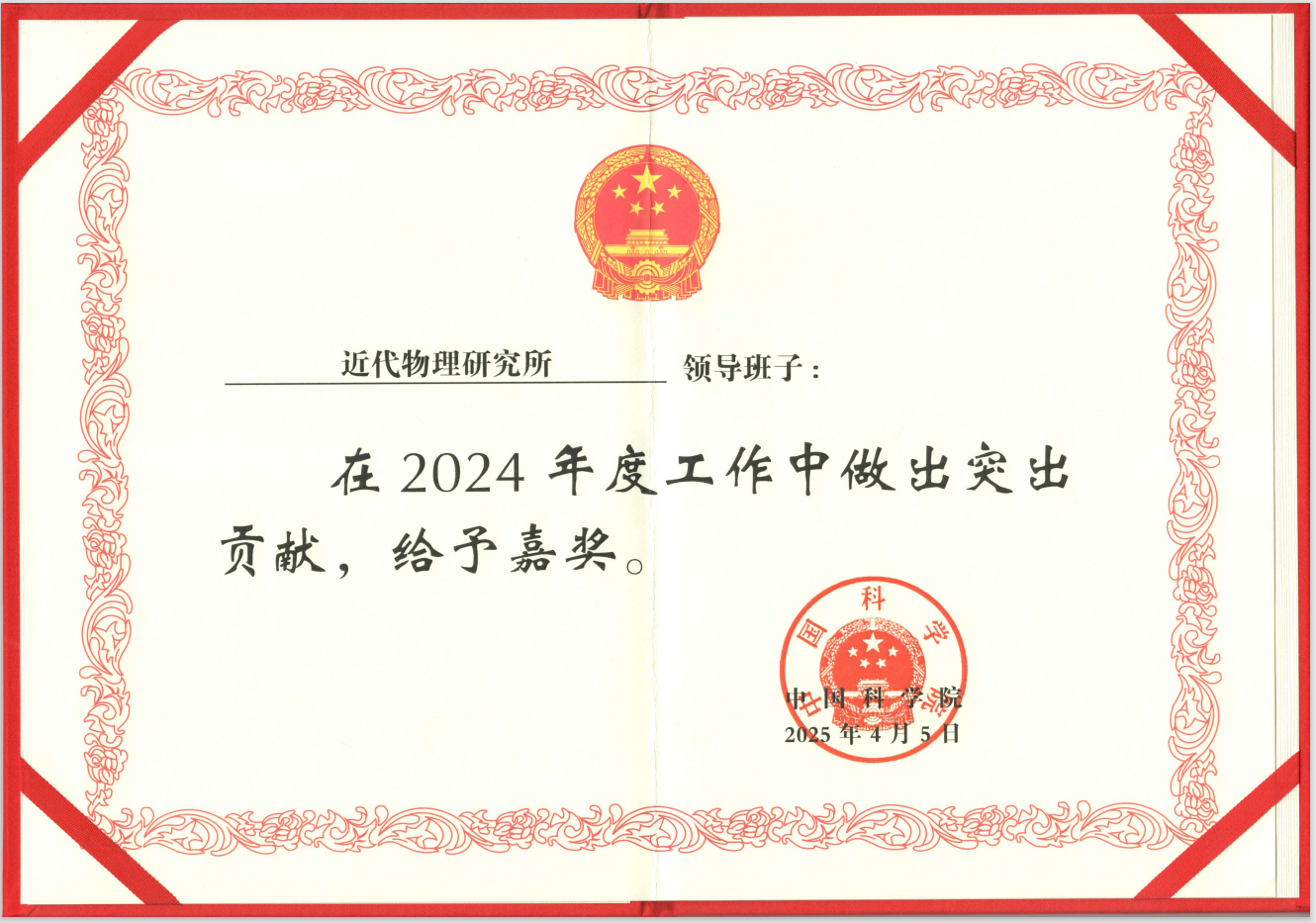 近日,中國科學院印發(fā)了2024年度領導班子和領導人員考核優(yōu)秀予以獎勵的決定。中國科學院近代物理研究所領導班子、所長孫志宇、副所長何源榮獲2024年度中國科學院嘉獎。