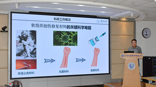 趙光輝作了題為“組織修復用生物醫(yī)用材料”的報告,聚焦高效動脈止血材料研發(fā)與構效關系研究,分享了在組織修復用高分子生物材料、殼聚糖止血粉、新型疫苗佐劑方面的最新研究成果與應用。
